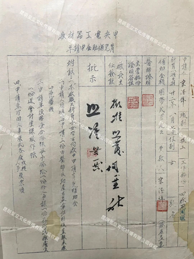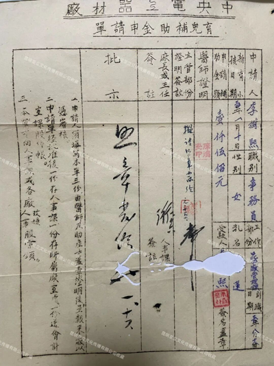 ▲1944年12月中央電工器材廠(昆明電纜集團前身)發放職工育兒補助國幣1500元。